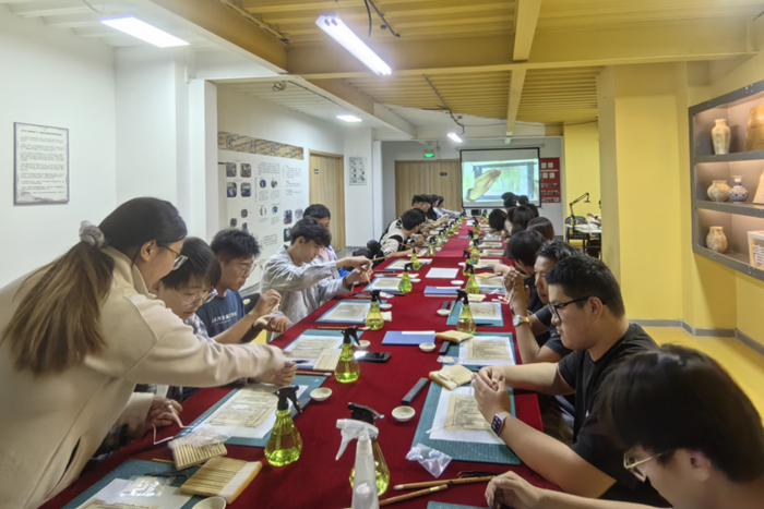 參觀過程中,通過講解員的細致介紹,師生們不僅欣賞到了連環畫作品的精湛技藝和獨特魅力,還深入了解了每幅作品背后的歷史背景和創作故事。大家還在博物館古籍修復老師的講解和帶領下,開展了非遺古籍修復研學課程。此次參觀不僅讓活動參與者領略到了連環畫的藝術魅力,更激發了大家的文化自信和民族自豪感。