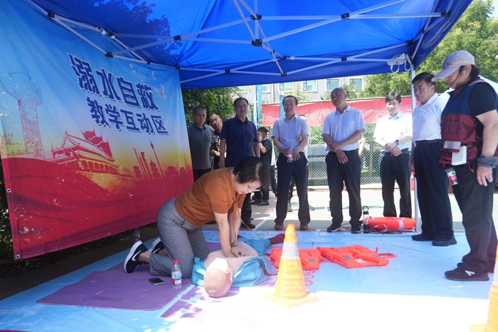 演練結束后,舉辦方在大廈籃球場開啟安全咨詢體驗活動。整個活動共設置了6個項目,分別為擁擠踩踏應急處置體驗區(充氣帳篷)、消防隱患排查試驗區、電動車電池穿刺爆燃體驗裝置、溺水自救互救教學培訓區、醉酒交通AR模擬體驗、安全標志互動區。活動現場氣氛熱烈,盡管天氣炎熱,但絲毫沒有減弱大家體驗掌握應急技能的熱情。