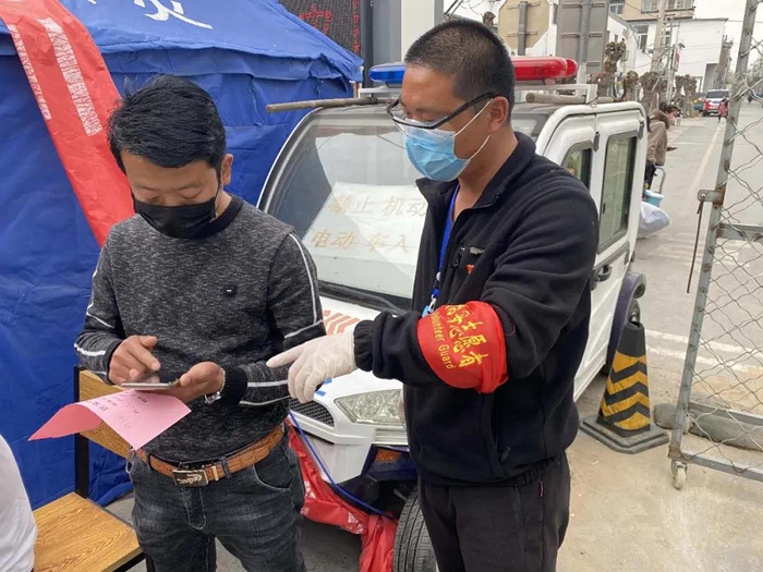 這家人員由于旅途勞頓有些疲憊,但在我們悉心地解釋和服務(wù)下,他們一直都非常配合我們的工作。就這樣,這家10余口的返京人員很快就完成了檢測體溫、人員登記注冊等一系列工作。特別是村口秩序,在我們有序安排下,沒有出現(xiàn)混亂和堵塞。