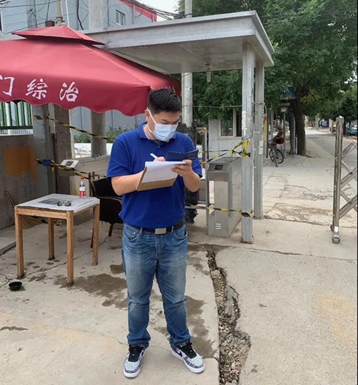 新發(fā)地批發(fā)市場是疫情的源發(fā)地,作為離此較近村子的下沉干部,我們勇挑抗疫重擔。雖然是二次下沉,看似都是老工作,但責任與壓力卻與第一次不可同日而語。為了控制住疫情,我們跟隨村委工作人員一起調(diào)整狀態(tài),認真摸底排查。在那最緊張的日子里,我和同事們幾乎盯在卡口處,我們分工合作,測體溫、登記、查驗出入證……一天下來,真是腰酸背痛,但在我們的努力下,村民們自我防護意識不斷增強,絕大部分村民都能主動配合我們的檢查,我們的工作也輕松了許多。