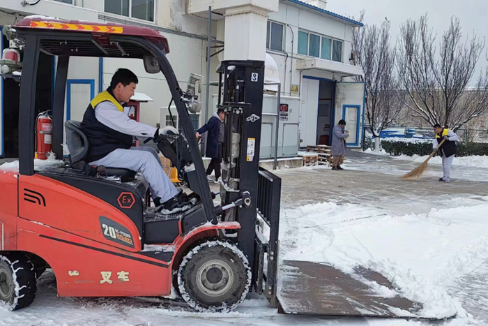 北普公司保供首都多家三甲醫(yī)院醫(yī)用氧和航空航天、微電子等重點產業(yè)特種氣體供應,為確保正常供應萬無一失,早在大雪前夕,公司專門對運輸產品車輛駕駛人員進行專項培訓。對車輛提前進行檢查,針對極寒天氣,對車輛電瓶、剎車制動等方面進行重點檢查,并提前加注適應寒冷天氣的燃料,避免大雪天氣啟動困難、燃油結蠟或者在外拋錨。同時,北普公司安排專人對華騰科技園區(qū)包裝氣項目施工現(xiàn)場開展融雪作業(yè),根據(jù)降雪情況進行施工作業(yè)調整,停止室外作業(yè),并根據(jù)雪情隨時做好應急準備。