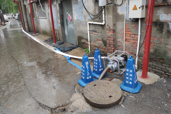 7月29日,在暴雨來(lái)襲時(shí)刻,北搪公司領(lǐng)導(dǎo)班子和干部職工連夜值守重點(diǎn)點(diǎn)位。大郊亭3號(hào)院是老舊平房宿舍區(qū),地勢(shì)低洼,也是朝陽(yáng)區(qū)防汛重點(diǎn)點(diǎn)位。為應(yīng)對(duì)此次強(qiáng)度大持續(xù)時(shí)間長(zhǎng)的極端暴雨天氣,公司在3號(hào)院安裝了4臺(tái)汽油排水泵、4臺(tái)小型電器排水泵,鋪設(shè)排水管線800米,準(zhǔn)備沙袋50個(gè),清理排水雨篦子9個(gè),由于思想高度重視、前期準(zhǔn)備工作充分,3號(hào)院平安度過(guò)這輪強(qiáng)降雨。