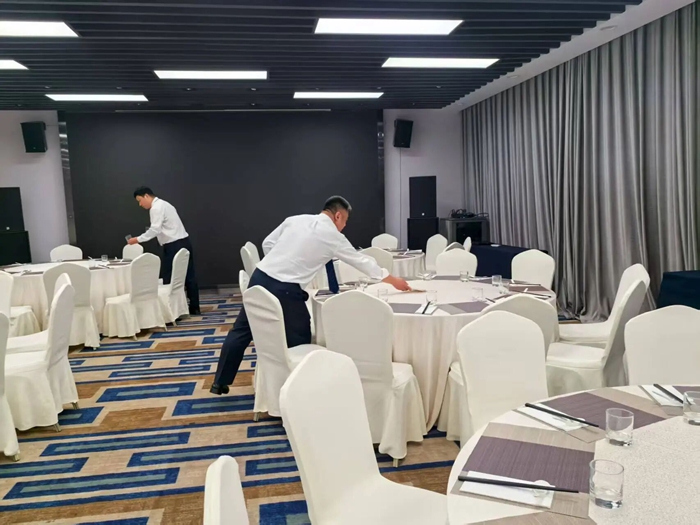 酒店前廳部作為接待窗口,提前完成房態(tài)梳理與入住流程優(yōu)化,保證了學(xué)警團隊的快速、有序入住;餐飲部精心籌備,科學(xué)配餐,確保每日膳食營養(yǎng)均衡、供應(yīng)及時;安保部則24小時值守,加強巡邏與進出管理,保障住宿環(huán)境安全無憂。許多員工主動加班加點,堅守崗位,在細(xì)節(jié)處體現(xiàn)用心,于細(xì)微處傳遞溫暖,給學(xué)警團隊的領(lǐng)導(dǎo)和學(xué)員留下了美好的印象,充分展現(xiàn)了華騰美居酒店“賓客至上”的服務(wù)理念和團結(jié)協(xié)作的企業(yè)精神。