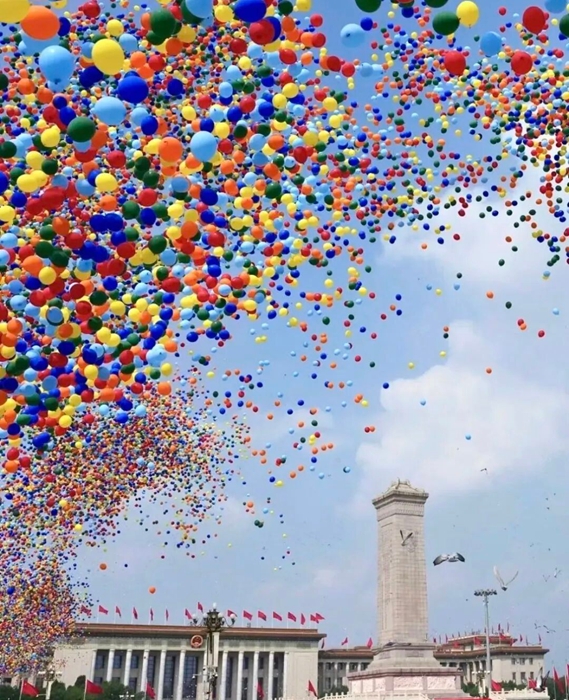 9月3日,紀(jì)念中國人民抗日戰(zhàn)爭暨世界反法西斯戰(zhàn)爭勝利80周年大會在北京天安門廣場隆重舉行。當(dāng)人們沉浸在雄渾威武的解放軍受閱部隊(duì)和滾滾鐵流中時,騰空而起的8萬支彩色氣球,伴隨著翱翔的和平鴿,將天安門廣場上空渲染得五彩繽紛、銳氣祥和,瞬間將紀(jì)念大會再次推向高潮。