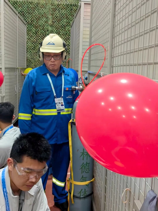 在這期間,為保障產(chǎn)品運(yùn)輸安全高效,北普公司提前對全部保障車輛進(jìn)行維修保養(yǎng);針對工作現(xiàn)場空間有限、人員較多的實(shí)際情況,公司專門定制了鋼瓶推車,消除了鋼瓶因手動挪動易發(fā)生碰撞、倒伏的隱患。此外,為確保充裝過程的絕對安全,公司還明確要求,鋼瓶到位后,必須用綁帶與氣球籠體固定,以免對現(xiàn)場操作人員造成傷害。可以說,在演練和正式活動中,北普公司始終將安全作為頭等大事,對每一個細(xì)節(jié)都實(shí)施清單化管理,最終確保了氣球充裝保障任務(wù)的全過程安全。