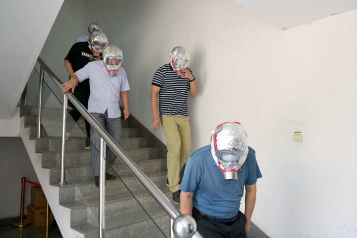 本次演練活動以“人人講安全,個個會應急”為主題,研究制定演習方案,確保應急演習符合實際要求,演練過程中,啟動了大廈新成立的微型消防站,隊員們穿戴整齊,動作專業(yè)標準,完成了演練設定的各項規(guī)定動作,在疏散過程中,總部為干部職工配備了過濾式消防自救呼吸器供大家體驗。