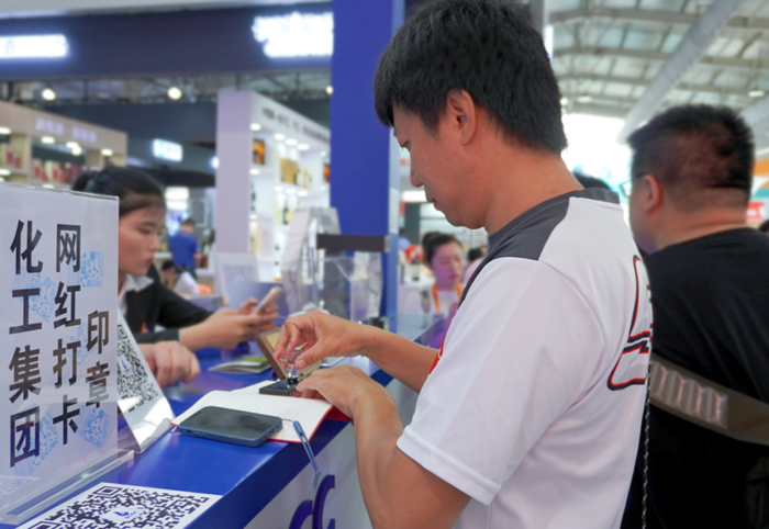網(wǎng)紅打卡印章,是此次參展的又一亮點,集團為此專門制作了有集團名稱樓宇的印章。“4號館,北化集團,3免(3個印章、免費)”的服貿(mào)會攻略已在“小紅書”上傳開,人們紛至沓來,在關(guān)注集團微信公眾號后,將“北京化工集團”印在自己的本上,讓北京化工在潛移默化中傳播。